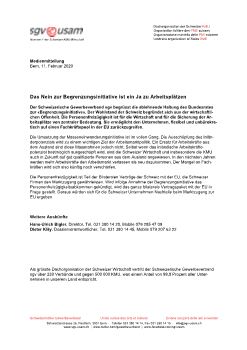 Die Personenfreizügigkeit ist Teil der Bilateralen Verträge der Schweiz mit der EU, die Schweizer Firmen den Marktzugang gewährleisten. Wird infolge Annahme der Begrenzungsinitiative das Personenfreizügigkeitsabkommen gekündigt, wird das ganze bilaterale Vertragspaket mit der EU in Frage gestellt. Daraus würden sich für die Schweizer Unternehmen Nachteile beim Marktzugang zur EU ergeben.